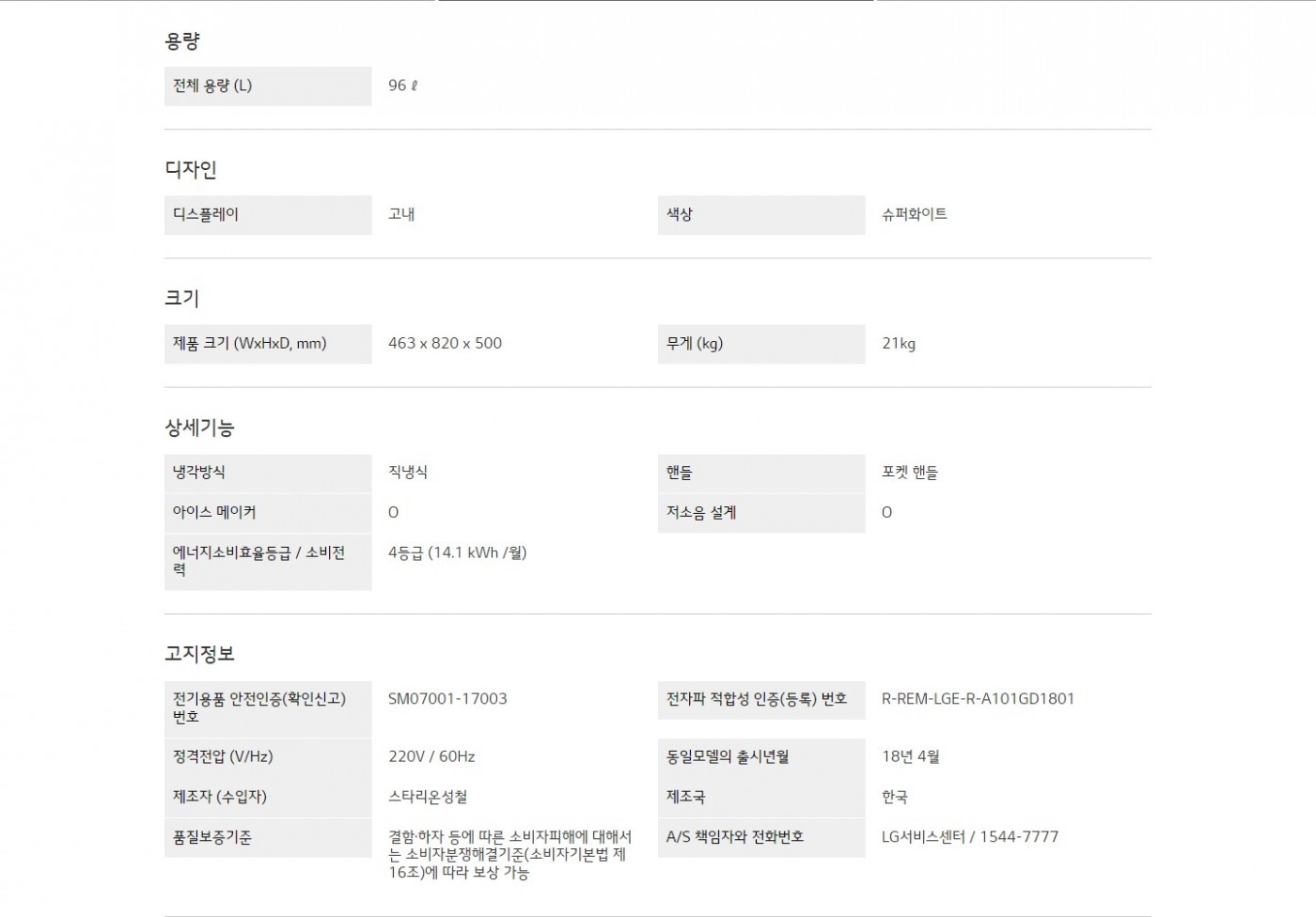 용량 : 96L